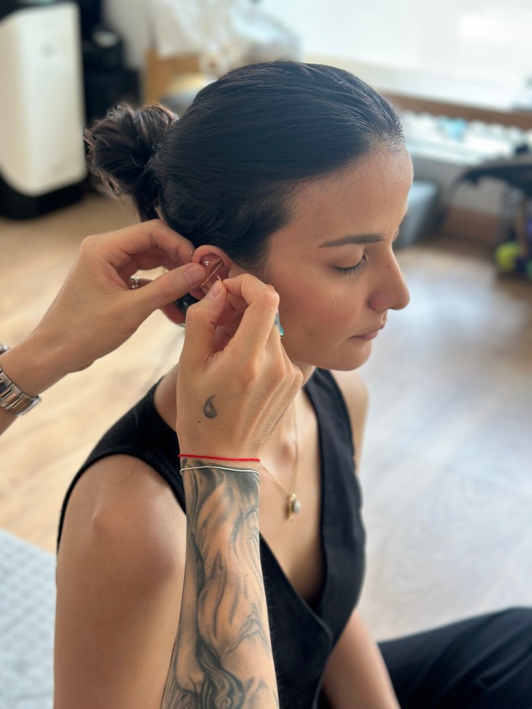A natural face sculpt rooted in traditional Chinese medicine — targeting specific acupuncture points on the ear to stimulate circulation of the face and surrounding areas to support lymphatic drainage, relieve stress, and encourage a subtle, natural glow from within.